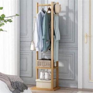 The Nordic Minimalist Clothes Rack offers a sleek and stylish solution to organizing your wardrobe essentials. This compact and versatile piece blends natural wood tones with modern simplicity, making it a perfect fit for minimalistic interiors. It features a sturdy hanging rail for clothing, hooks for accessories or hats, and a lower shelf for shoes or storage baskets. The open design allows easy access to your everyday items, while its small footprint makes it ideal for tight spaces such as bedrooms, entryways, or dressing areas. With its blend of function and Scandinavian-inspired design, this clothes rack enhances both style and organization in any room.