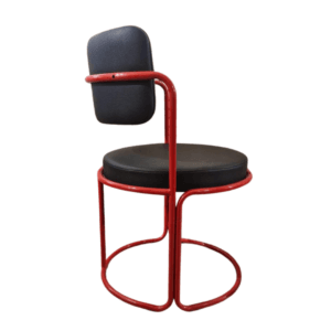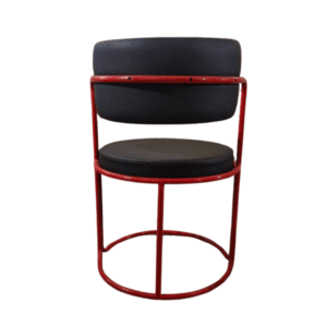 The Orbit Chair combines a bold design with modern comfort, making it a unique seating option for contemporary spaces. Featuring a round metal frame in a vibrant red finish, this chair stands out with its circular base and sleek lines. The cushioned seat and backrest are upholstered in high-quality leatherette, offering a comfortable and stylish experience. The Orbit Chair is perfect for cafes, dining rooms, or any space looking to add a pop of color and an industrial edge. Its round silhouette and striking design make it both a functional and decorative piece.