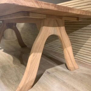 Its organic, flowing lines and richly grained surface bring warmth and character to backyards, gardens, and rooftop terraces alike. The signature arched teak base is not just visually striking—it also ensures superior durability and support. Available in two spacious sizes, the Taverna offers comfortable seating for gatherings of 6 or 8, making it perfect for everything from cozy dinners to large celebrations under the sky.